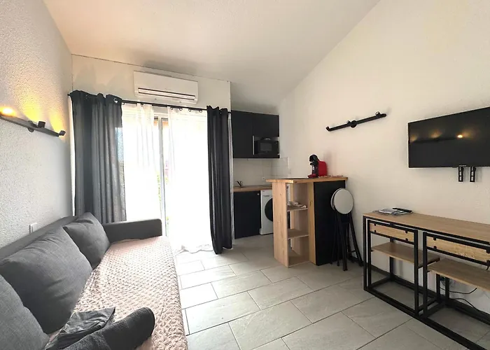 아그의 손님들은 2 Couchages Vue Port Piscine Le Cap D'Agde 아파트에 머무실 수 있습니다. 아파트 아파트는 1개의 침실, 1개의 욕실과 작은 부엌을 갖추고 있습니다.